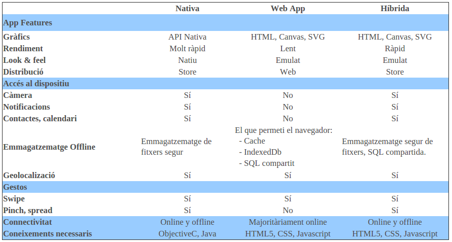Vistes totes les característiques anteriors, s'ha decidit programar una aplicació híbrida